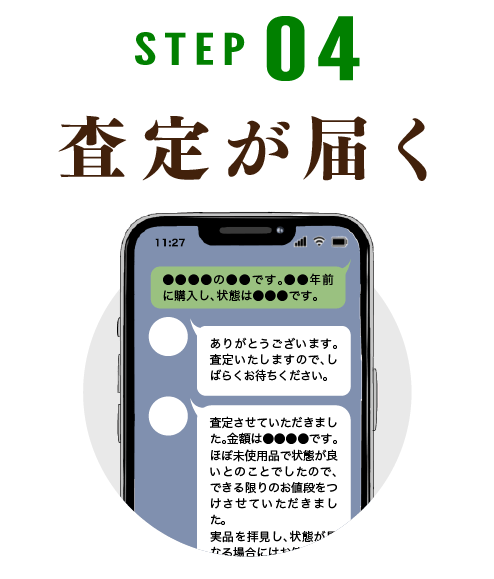 お品物が当店に届いた後、速やかに査定、買取金額をお客様にお伝えいたします。お待たせしない買取をモットーに、丁寧に対応いたします。
